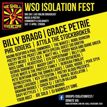 This event was memorable for many, many reasons. Supporting Billy Bragg, Grace Petrie, Joe Solo and Jess Silk, streaming to 800-odd people, 7.6k views over the next couple of days and almost £30,000 raised by 32 artists and 25.9k audience members for We Shall Overcome; all of these were phenomenal.